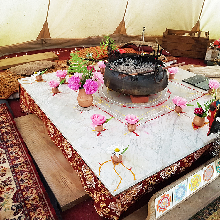 The fire ritual takes place in the evening at my home in the Scheldewindeke tent. If possible, participants are asked to shower at home beforehand and put on fresh clothing that may become a little dirty. We sit around the fire on a flat surface, so it is best to wear loose clothing and depending on the weather you can also bring an extra blanket.